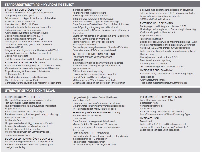 Utrustningsprogrammet finns på <http://www.hyundai.se/files/uploads/i40 ... 20_web.pdf>.