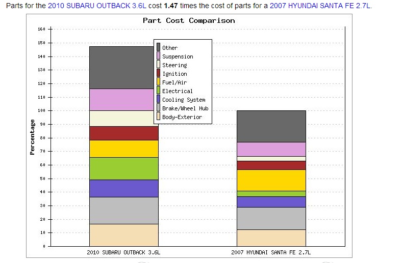 Exemplet nedan har jag jämfört en Subaru Outback med min Santa Fé. Här kan man också se vilken typ av delar som går mest.