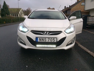 20 tums ramp från bilupplysning.se märke oledone för ca 3400kr. Bra ljus. Sågade och fällde in, sitter fast bakom regskylten. Tvungen att komplettera med en extra plåt som jag popnitade fast i extraljusplåten. Allt popnitades fast i plasten med splitnit och några strängar fästmassa.